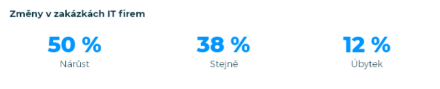 50 % IT firem z našeho průzkumu hlásilo od začátku korona krize nárůst zakázek jak z veřejného, tak ze soukromého sektoru. 38 % společností je na tom se zakázkami stejně.