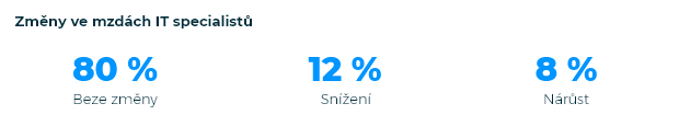 Tento trend potvrzuje i průzkum mezi IT společnostmi ve smitiu, kdy ve 12 % firem došlo k plošnému snížení mzdy u všech zaměstnanců (nejen u IT specialistů) na předem dohodnutou dobu.