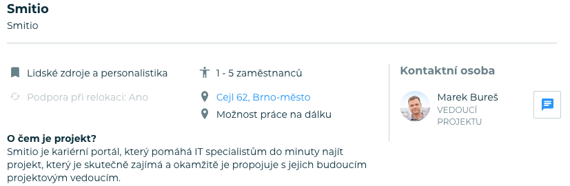 Potom přijde na řadu informace o firmě a o vašem budoucím týmu.