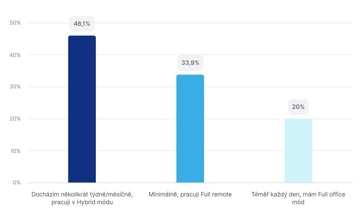 Jen málokterý IT specialista sedí denně v kanceláři, firmy se naučily s odborníky spolupracovat vzdáleně. Ajťákům se tak otevřely nové možnosti. „Z našeho dotazníkového šetření vyplývá, že 46,1 procenta ajťáků dochází do kanceláře několikrát týdně, mají takzvaný hybridní model spolupráce, dalších 33,9 procenta pracuje z domova a pouze 20 procent dochází do kanceláře denně. Trend vzdálené spolupráce nastavila pandemie. Covidem se smazaly hranice a čeští IT specialisté začali být velmi zajímaví pro zahraniční společnosti, které jim nabízí pracovat z Česka za zahraniční plat," sdělila Denisa Janatová.