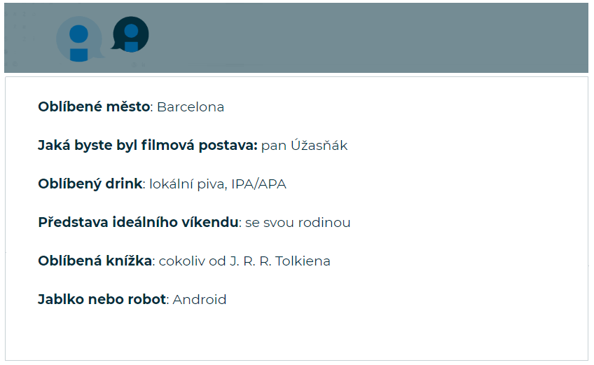 Na závěr jsem se Toma zeptala, co si myslí, že by o něm řekli jeho podřízení. Byla to snad jediná otázka, kde opravdu dlouho přemýšlel. Na Tomášovi bylo vidět, že váhá, zda to, jak by si přál, aby ho podřízení viděli, je v souladu s tím, jak ho opravdu vidí.