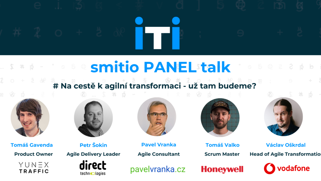 Přidejte se k moderované odborné diskuzi, kde se naši hosté Petr Šokin (Direct technologies), Václav Oškrdal (Vodafone), Tomáš Gavenda (Yunex Traffic), Tomáš Vaľko (Honeywell) a Pavel Vranka (Slovenská sporiteľňa) podělí o své zkušenosti s agilní transformací.