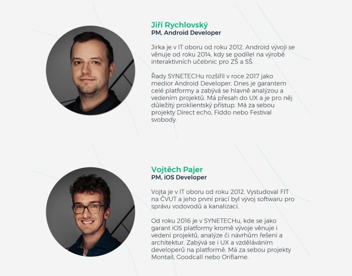 Jirka (Android): Asi můžu říct za obě platformy, že naší přidanou hodnotou je reaktivní vývoj. To znamená, že vše děláme asynchronně. Nečekáme, až se něco stane, protože se to v pohodě děje někde na pozadí a neblokuje nás to. Také používáme multimodulární architekturu, která je doporučovaná Googlem a jsme v ní dobří. Většinou totiž něco prokopneme ještě dřív, než to Google připraví. Aplikujeme při vývoji aplikací ty nejnovější věci.