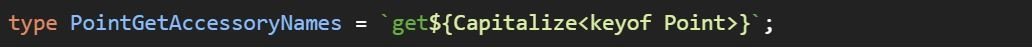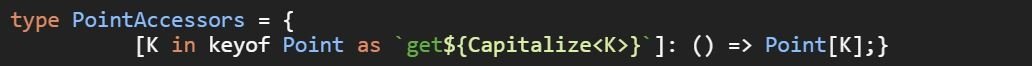 Nejčastější použití nalezneme spolu s template literal type. Mějme typový alias Point, jehož definice je následující