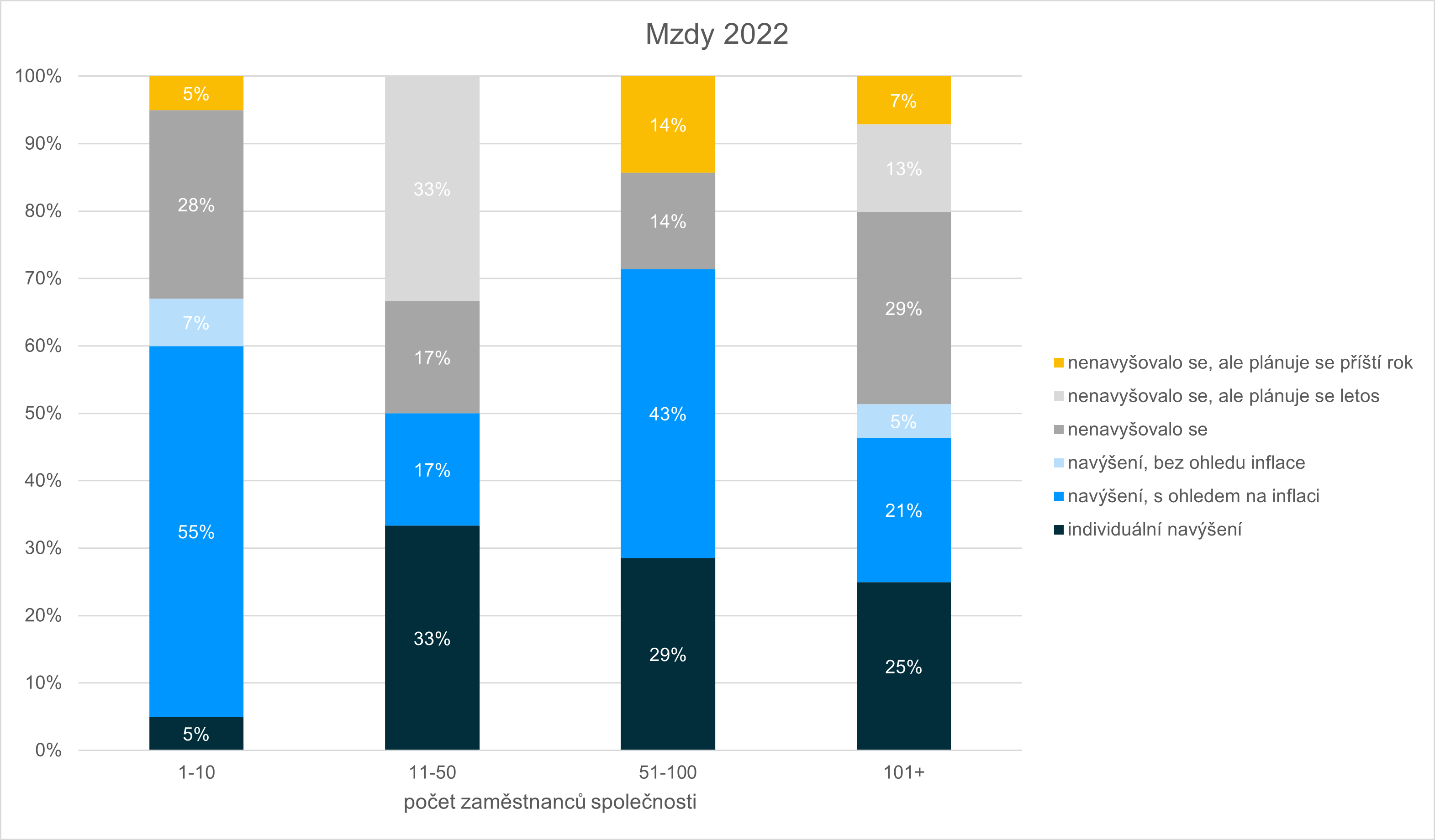 Letos inflace ovlivňovala výši mezd mnohem více. Je to z důvodu, že životní náklady zaměstnanců rostou mnohem rychleji než v předchozích letech. Je mnohem větší tlak na firmy, aby svým zaměstnancům navýšily finanční ohodnocení, z důvodu zvýšení osobních nákladů. Nejistota z budoucnosti u zaměstnanců opadá a nahrazuje ji potřeba udržet si životní standard. Zaměstnanci jsou mnohem ochotnější měnit zaměstnání než v minulém roce. To samozřejmě nahrává společnostem, které mohou obstát na konkurenčním trhu. Bohužel tak, jak rostou životní náklady, rostou provozní náklady a vzniká tak pomyslný střet.